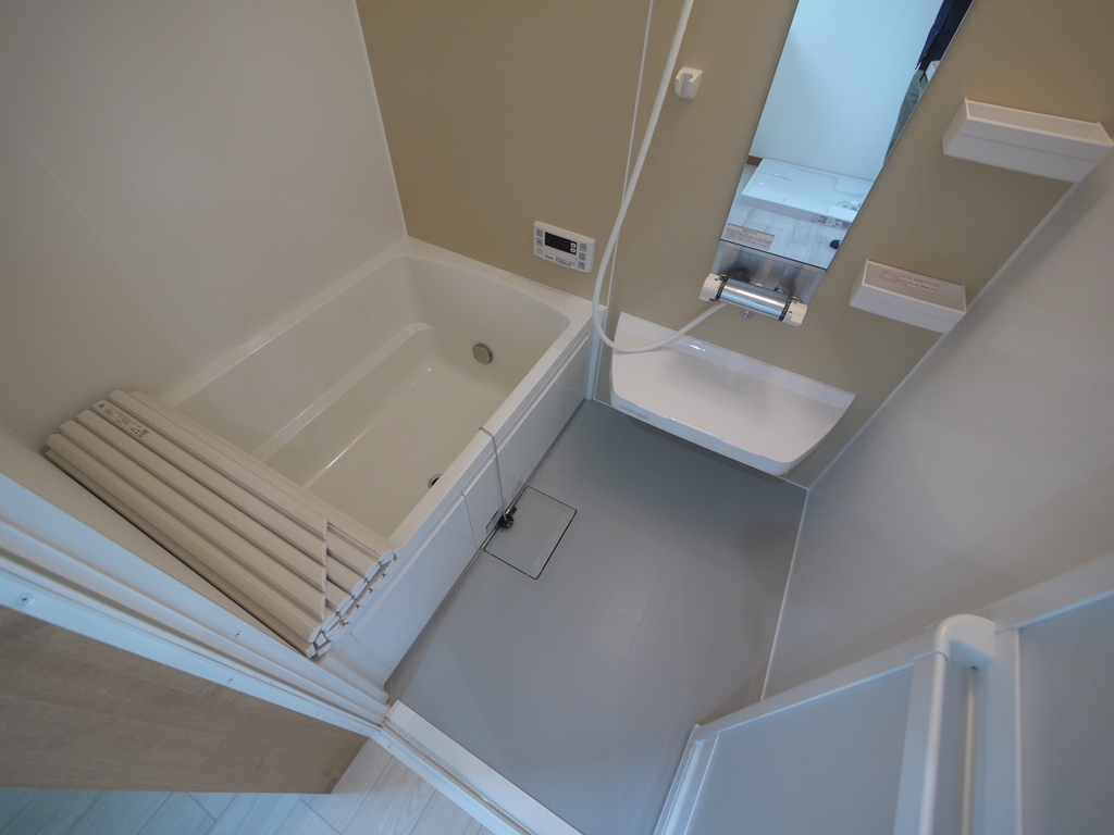 設備状況 | 水洗・給湯・追い焚き・エアコン・ウォシュレット・シャワー・洗濯機室内・照明・BS・ガスコンロ・モニターフォン・TV台・カーテン・無料インターネット・宅配BOX |