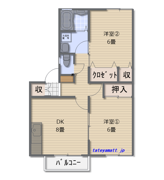 | 床面積 / 間取り | 49.58㎡(15坪) / 2DK |